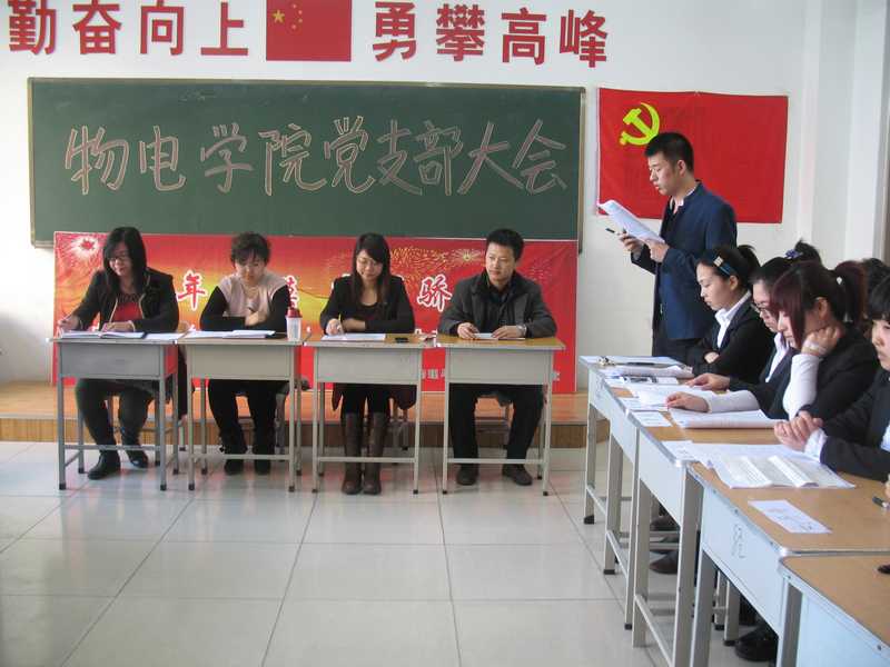2013年4月7日中午12点,best365官网员工党支部纳新大会在主楼232举行。大会由党支部书记邓雨巍组织,组织建设科长刘彰基、员工支部委员张宏伟、辅导员丁军荣出席会议。