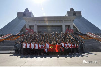 在长达一个半小时的徒步,大部队终于到达了目的地-铁人王进喜纪念馆,抬眼望去,沐浴在阳光下的纪念馆是那么庄严雄伟。在员工会干部的带领下,新生在铁人纪念碑合影留念,随后井然有序的进馆参观。
