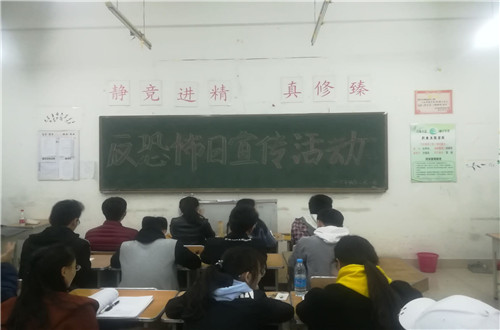 2018年4月9日,best365官网17级各班开展“反恐怖日宣传活动”主题班会,班会向同学们普及反恐知识,宣传恐怖主义的危害,使同学们了解身边可能发生的危险,提高安全意识,有效的保护自己。