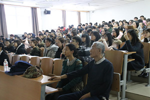 在主持人精彩的开场白后,讲座正式开始。伊始,王传英老师简要的介绍了张朝仁老先生,称他为“当代的徐霞客”,并希望同学们在这次讲座中学会游历自己的人生。随后,张朝仁先生正式开始讲说。张朝仁先生围绕兴趣、读书高度、刻苦、科学读书四个方面展开论述,并强调读书是国家和个人成长发展进步的坚实基础。张朝仁先生用自己艰辛的求学经历教导同学们要有刻苦学习的精神和坚韧不拔的毅力,要尽早树立志向、抉择目标。本次讲座临近尾声,同学们积极踊跃的向张老先生提问。讲座后同学们纷纷表示将切合实际情况,并结合张老先生讲述的内容运用到以后的读书学习中。