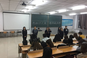 经过主持人一番精彩的开场白,一场关于相遇、相知的团活拉开了帷幕。歌曲《遇见》让同学们在悦耳的歌声中体会相识的故事。随后,诗朗诵《相识》进一步诠释了相识之缘。小品《大哥,二哥搞我》更是以搞笑的方式吸引了观众的眼球,将团活推向高潮。接下来的三句半、情景剧《朋友》、《最美的时光》使大家在捧腹大笑的同时也体会到了相识的趣味。如果说前世五百次的回眸换得今生的擦肩而过,那么一千次的回眸便能使今生相识。在团活接近尾声时,四位同学的歌曲串烧完美的演绎了相遇、相知的意义。