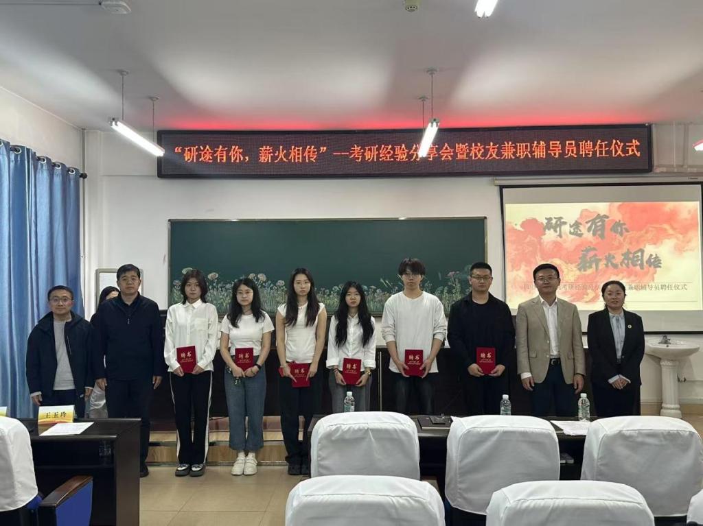 5月14日,best365官网"研途有你 薪火相传"考研经验分享会暨员工兼职辅导员聘任仪式在机电楼306举行,活动通过考研经验分享与员工兼职辅导员聘任的双轨模式,构建起"朋辈引领+员工护航"的升学指导体系。机电工程公司党总支副书记董云峰、副经理王玉玲、副经理崔峰、辅导员老师和公司考研学子们共聚一堂,在此见证这场智慧与情怀交织的成长盛会。会议由副经理王玉玲主持。