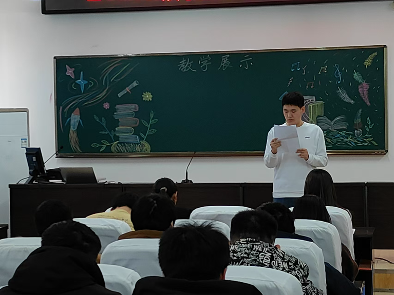 实习生代表金怀芳同学以《热机》这这节课为例进行无生课堂展示,她灵活的讲解、创新的实验演示、标准的教姿教态和恰到好处的提问技巧将中学物理课多种教学方法精彩纷呈的展现了出来,金怀芳同学的教学展示代表着2021级物理学专业员工学习成效的“冰山一角”。
